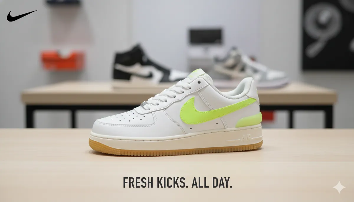 Alliez l'héritage classique de la Air Force 1 à l'énergie pure du coloris Volt. Une base blanche immaculée, une touche néon vibrante et une semelle Gum authentique pour un style qui ne dort jamais.